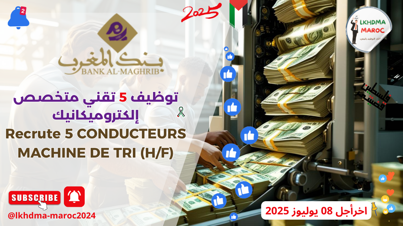 BANK AL-MAGHRIB Recrute 5 CONDUCTEURS MACHINE DE TRI (H/F) TS ESA